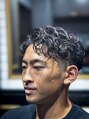 強めにかけたパーマを自然に流すスタイル。きっちり分けても良し。サイドはトップとのバランスを考慮し、3っmからのローフェードで仕上げました。(新座/バーバー/メンズ)〈理容室〉
