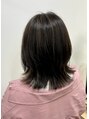 カットは、段を全体に入れ動きのあるレイヤースタイル。カラーは、ハイライトを入れベージュ系のカラー剤でオンカラー。 "メリハリのある立体的なスタイル"