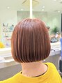 襟足ギリギリのコンパクトなミニボブは、首が長く全身のバランスが良く見えスタイルアップ効果大の最強スタイル!透明感カラーでオシャレ度をプラス。