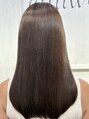 髪質改善METEOストレート毛量は多く細い。トップの部分は更に細くハイトーンでのデリケート毛。時間はかかるが丁寧にコントロールすることでキレイなツヤと柔らかさで仕上がっています。