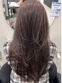 - 木更津/セミロングレイヤー ミルクブラウン ローライトカラー ダークパープル ミディアムハッシュカット
