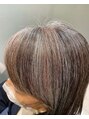 ダークブラウンとピンクベージュのローライトで陰影をつけ、白髪を生かしたヘアカラー。そのままだと乾燥して見えがちのグレイヘアに暖色をプラスすることでツヤ感がアップ◎あえて残した地毛のグレイヘアがとってもおしゃれです!