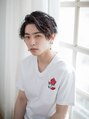 雰囲気のある七三スタイルです!長めの前下がりのショートに、ゆるめのウェーブスタイル。襟足、耳周りは短めで、爽やかな印象に☆カラーはダークトーンで仕上げることで、抜け感がでます!そして、スタイリングも時短でできます。