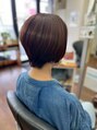 前髪無しのショートボブにイメージチェンジされました♪後頭部にふんわりボリュームを作りすそは膨らみが出ないように軽めにカットイキイキした艶髪をキープされています