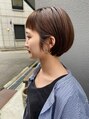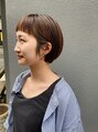 ワイドなショートバングが印象的なショートボブ。サイドの毛を耳にかけた時にもバランスがいいようにカットしてあります。