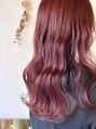 毛先はプツッと揃えて重さを。上はたっぷりなピンクを入れてインナーはブルーブラックでメリハリと透明感を。保湿トリートメントでしっとり感と艶感を◎