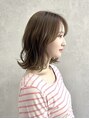 透明感たっぷりのベージュカラーと、首元のくびれラインで華奢見え効果抜群!表面にレイヤーを入れることで、軽やかな動きと女性らしい柔らかさを演出します。コテで巻くのが苦手な方でも、外ハネベースの簡単スタイリングでこなれ顔に。