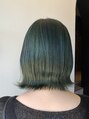 くすみグリーン/切りっぱなしボブ/ブリーチカラーUP
