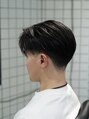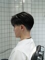 骨格に合わせてサイドと襟足はスッキリフェードで締め、トップは自然な動きが出るように調節。ラフにかき上げるだけでまとまるようにカットしているので、スタイリングも簡単に決まります。清潔感と抜け感を両立した、日常に馴染むメンズスタイル。
