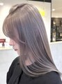 ブリーチ2回でつくるホワイトグレー。透き通るような透明感と淡いグレーがこなれ感を演出します。大人ハイトーンはぜひお任せください。(ダブルカラー/インナーカラー/ケアブリーチ/ブリーチなしダブルカラー/髮質改善/レイヤーカット/天神)