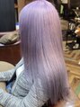ペールラベンダーカラー。ケアブリーチでしっかり明るさを出すことで淡いペールトーンをお楽しみいただけます。(ダブルカラー/インナーカラー/ケアブリーチ/ブリーチなしダブルカラー/髮質改善/レイヤーカット/天神)