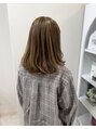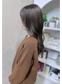 髪質改善カラーでダークなブルーグレージュ。自然光で透明感が際立つカラー。お仕上げはカールアイロンでやる巻き