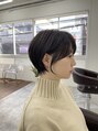 マッシュショート。コンパクトに収まる。毛量でお悩みの方におすすめ!耳掛けをした時のサイドバングでより小顔に!