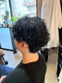 ツイストスパイラルパーマ×センターパート×刈り上げ