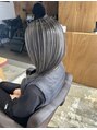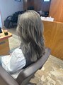 赤味、黄色味を消しながら綺麗なグレージュカラーにしています。施術はブリーチせずに1回のシンプルなカラーリングで行います。