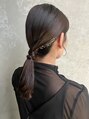 - タイトヘアセット黒髪ヘアアレンジ金箔パーティーセット結婚式ヘアお呼ばれヘアハーフアップリボンヘア渋谷