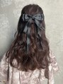 ハーフアップヘアアレンジハーフアップヘアセット三つ編みリボンUP