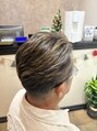 かきあげのツーブロスタイルにメッシュをプラス。気になる白髪をぼかしながらデザインを楽しめます。