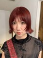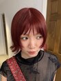 外ハネボブ/ざくざくバング/ブリーチなしダブルカラー/赤髪UP