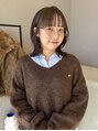 アッシュグレージュ +切りっぱなしボブ