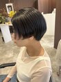 ワンレンボブからバッサリとハンサムショートにカット!クセがあり広がりやすい髪質なので、美髪矯正で髪のおさまりを良くし、髪にツヤが出るようにしています。ツヤツヤの黒髪ショートはとてもオシャレが決まる!ツヤが必須です!