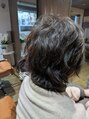 伸ばし中の為、長さは変えずにカラーリタッチして全体的にパーマ、襟足は外ハネて動きを出しました。手ぐしで画像の様な感じに!marbbマーブ+5ステップトリートメントでうるツヤになりました。