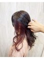インナーガーネットピンク♪インナーカラーはブリーチ1回にガーネットピンクにカラー♪ブリーチ1回でもできるカラーです(^^)【TELA HAIR 石岡】