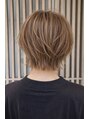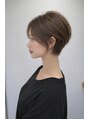 丸みのあるシルエットで女性らしいすっきり感を両立したマッシュショート襟足はタイトにおさめながら、後頭部に自然な丸みが出るように仕上げているので横顔までバランスよく見えるのがポイントです。