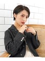 透明感のあるアッシュブラックカラーで抜け感のある大人ショートスタイル♪シースルーバングで軽さもプラス!