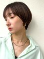 トレンドのコンパクトショートに、肌馴染みの良いダークアッシュを合わせたスタイル。小顔魅せ効果抜群のカットで、30代40代の方も若々しく垢抜けた印象に。透明感カラーで抜け感を演出し、手入れも簡単なスタイルです。