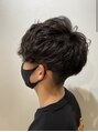 丸みの強いマッシュにカットし、前髪に少し重さを残してワンカールにパーマをかけました。重すぎないようにカットし、ワックスに限らずオイルでも仕上げられるようにしました。