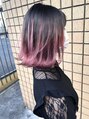 根元は黒のまま、大人気のバレイヤージュヘアです!!毛先をブリーチして、毛先にはエモピンクに仕上げました!!