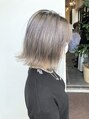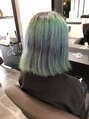 シルバー系にカラーチェンジをご希望だったので、丁寧なブリーチワークで緑をとばし、なるべく傷めずハイトーンカラーに仕上げました!