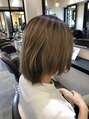 襟足が長くとてもフロントとのバランスが悪かった為、今回は襟足をギリギリまで短くしてやや前下がりのショートボブに仕上げました!カラーはインナーカラーにして内側のみピンクバイオレットに染めました!一色ではつまらない方にはとてもおススメです!