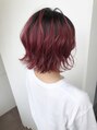 根元はあえて黒い部分を残して毛先のみブリーチをしてワインレッドに毛先を仕上げました!個性的なスタイルはかわいさとカッコよさの二つが手に入ります♪