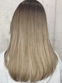 二回ブリーチしてあるベースにワンブリーチのハイライトを入れて、上からベージュをのせてあります。ムラサキシャンプーを使用していただくとハイライト部分が白っぽくなるので可愛いですよ!