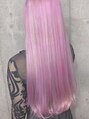 淡いピンクになります。ベースは白っぽくして、上からカラーバターを被せました!写真のように全体的にピンクにしても良いですし、インナーや毛先だけをピンクにしても可愛いですよ!学割U24 ダブルカラー インナーカラー ブリーチ キッズカット エクステ