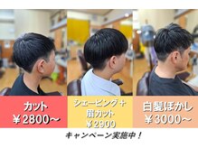 【駐車場あり/理容室】マンツーマン施術で年代問わず気軽に通える♪白髪ぼかし¥3000/カットのみ¥2800~