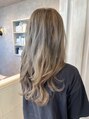 いつもはブリーチオンカラーですが 今回は艶カラー。 ベースが出来上がってるので透明感抜群 少しある白髪もミルクティーベージュに。