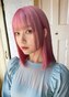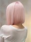 こちらは目を引くビビッドなピンクをベースに、フェイスラインにアクセントとしてブロンドのハイライトを効かせたストレートロングスタイル。パッツン前髪とストンと落ちるシルエットがカラーの…